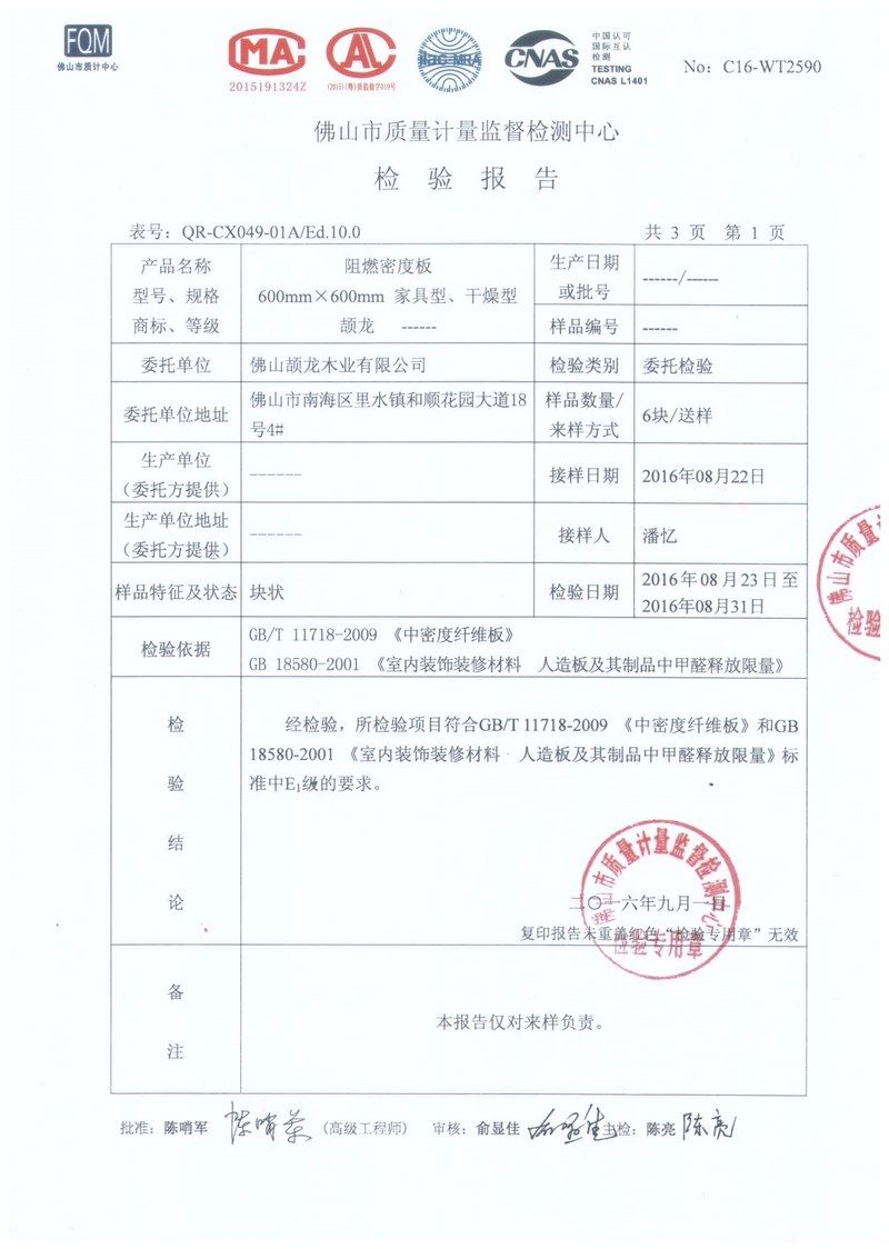 佛山頡龍木業(yè)有限公司,成立于2015年7月,集多種特殊板材的研發(fā),生產(chǎn),銷售于一體。主打產(chǎn)品包括有阻燃密度板,阻燃膠合板,A級(jí)阻燃板,防潮密度板等等。其標(biāo)準(zhǔn)有(國(guó)標(biāo)B1-C,國(guó)標(biāo)B1-B,美標(biāo)ASTME84-A,英標(biāo)BS476,歐標(biāo)EN13501,澳標(biāo)AS5637.1)廣泛應(yīng)用于建筑裝飾、酒店裝修、家具制造、隔斷墻和地板等行業(yè)。產(chǎn)品的穩(wěn)定性,優(yōu)質(zhì)的服務(wù)得到業(yè)內(nèi)的認(rèn)可。 佛山頡龍木業(yè)有限公司,自創(chuàng)立以來(lái),以“誠(chéng)信為本,優(yōu)質(zhì)產(chǎn)品,共贏互利”為發(fā)展宗旨,致力于打造優(yōu)質(zhì)功能板材。